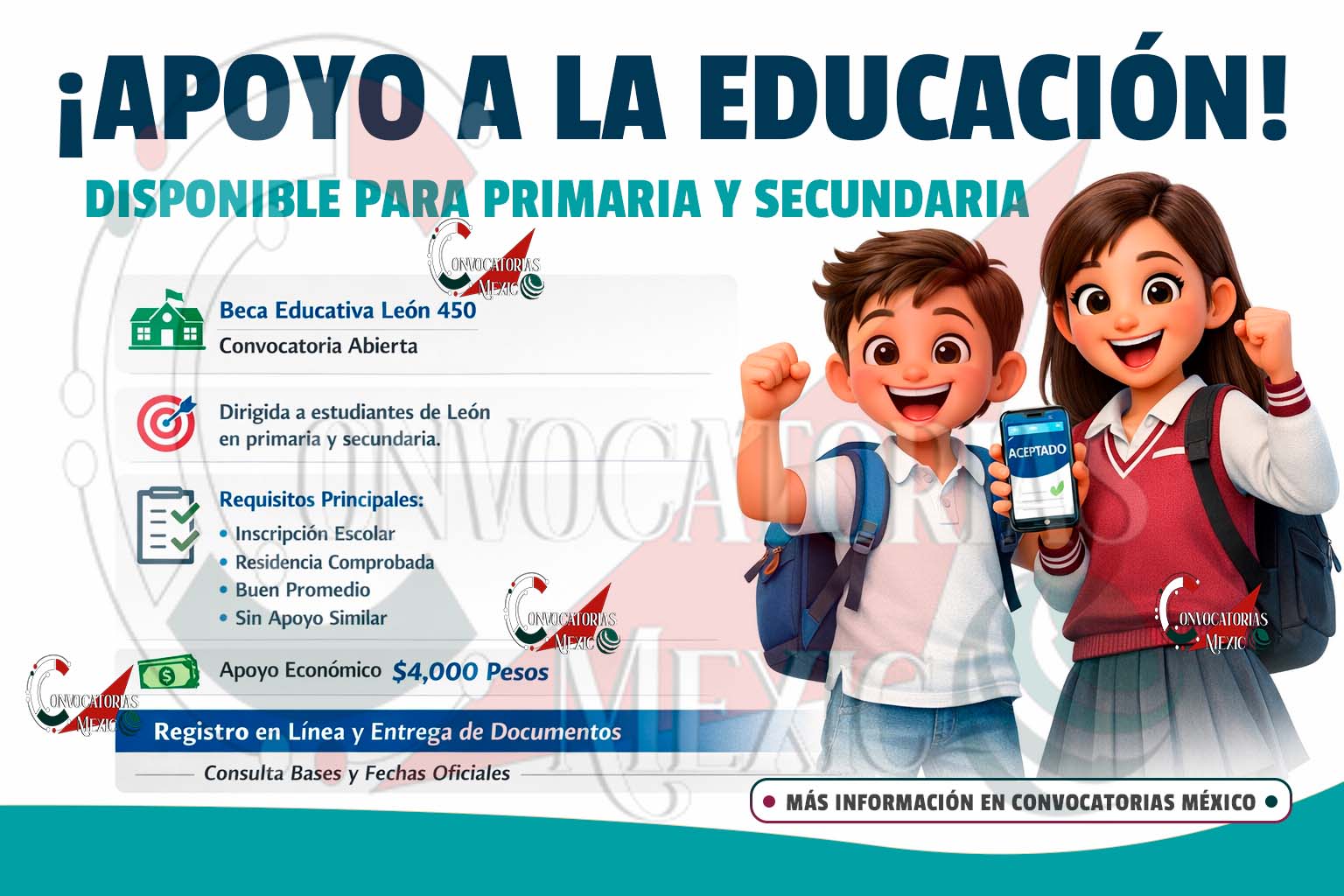 Convocatoria abierta: Beca Educativa León 450 para estudiantes de primaria y secundaria