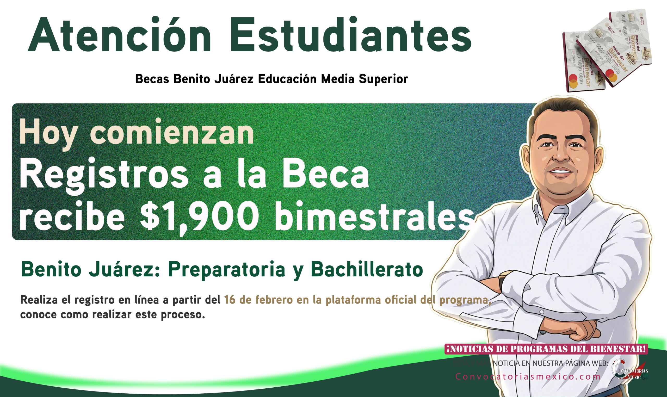 Durante el mes de febrero, muchas familias mexicanas han estado preguntando: “¿Cuándo es que estará disponible nuevamente el registro para la Beca Benito Juárez de educación media superior?”, puesto que el apoyo que ofrece este barrio programa social permite aliviar gastos de transporte, útiles escolares, entre muchos otros más que la educación genera. Por ello, desde Convocatorias México te diremos las fechas ya disponibles para que puedas realizar tu registro al programa durante el mes de febrero.