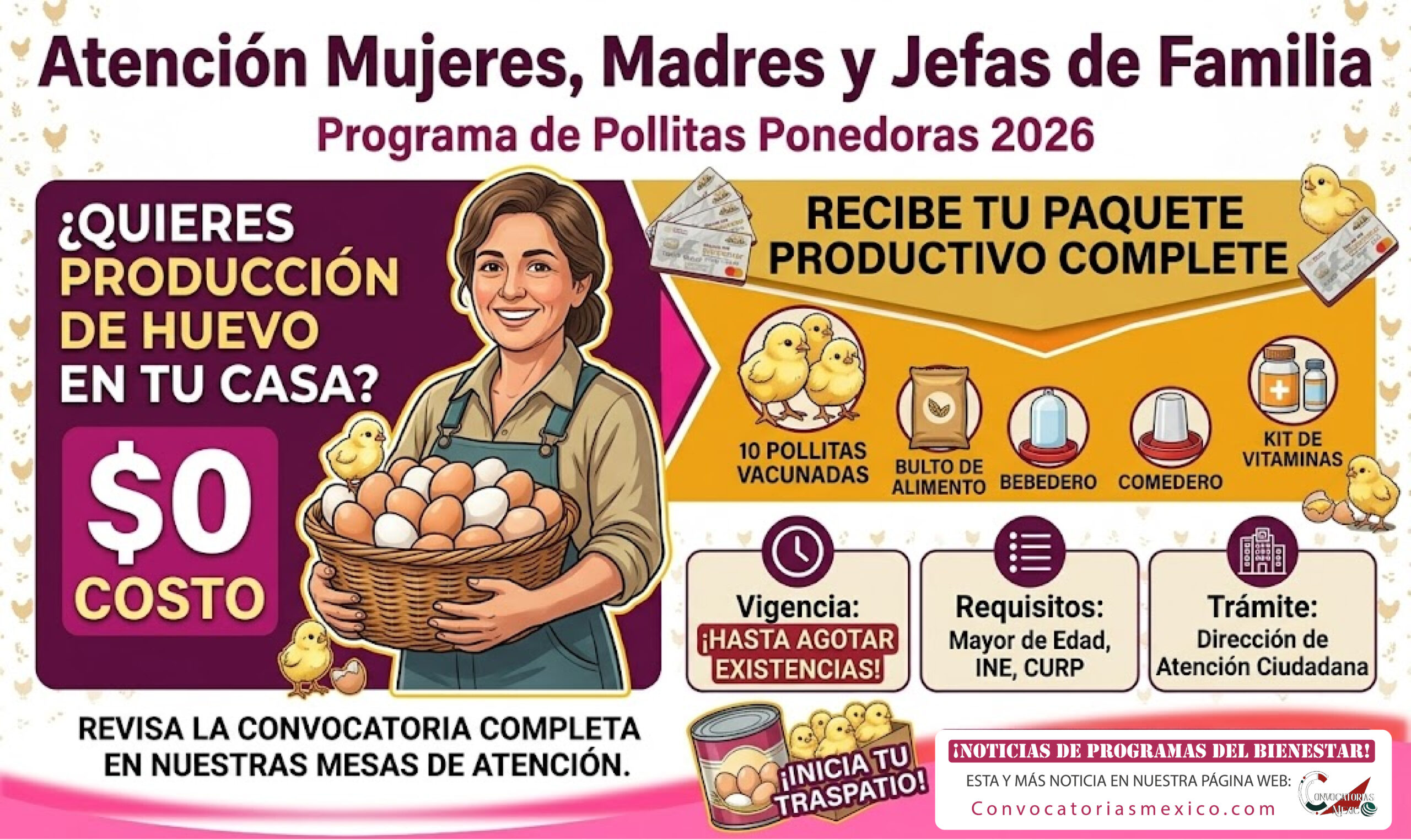 Se brió la convocatoria del programa “Impulso a las Mujeres para la Producción de Pollitas Ponedoras” 2026, dirigido a mujeres que viven en el municipio y quieren iniciar o fortalecer una pequeña producción de traspatio.